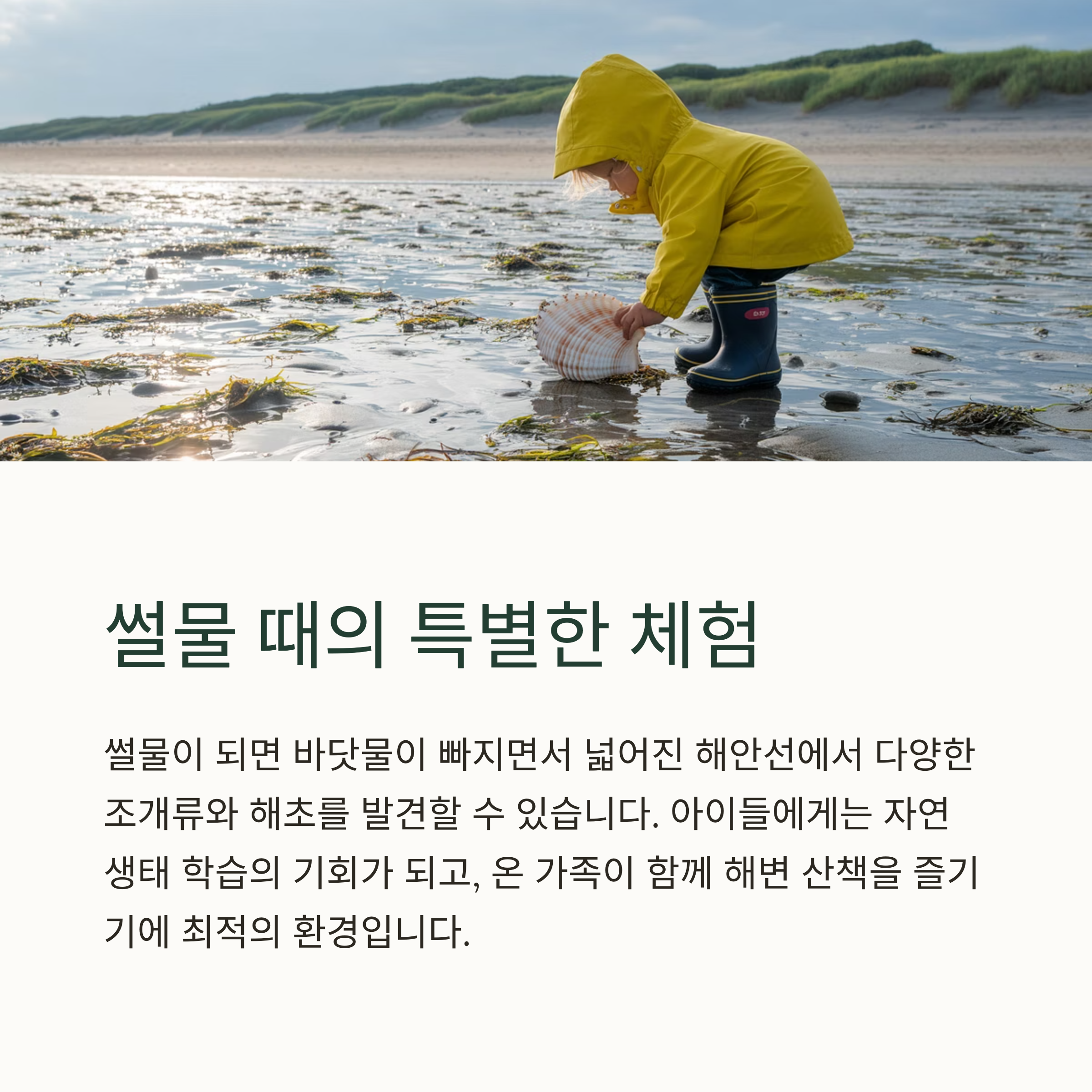 썰물 때가 되면 바닷물이 빠지면서 해안선이 넓어지고