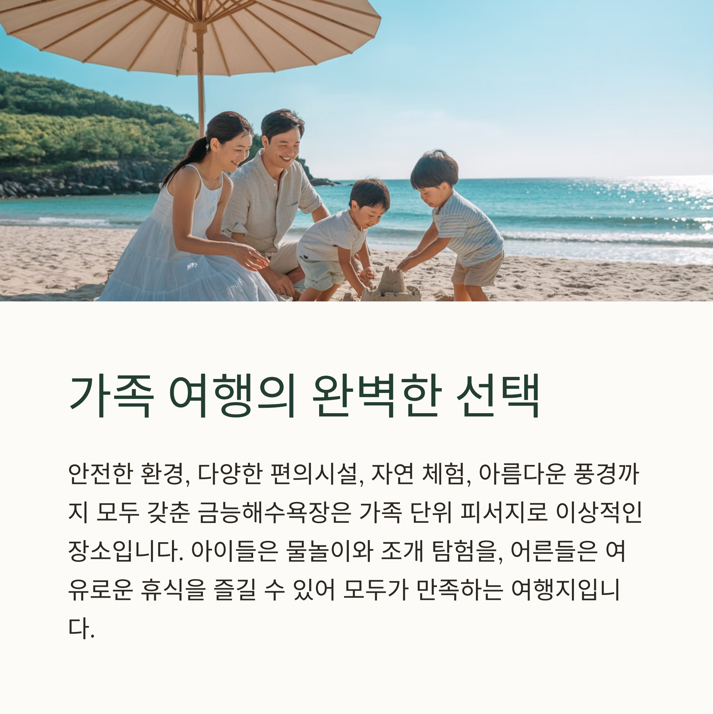금능해수욕장은 가족 단위 피서지로 이상적인 장소입니다.
