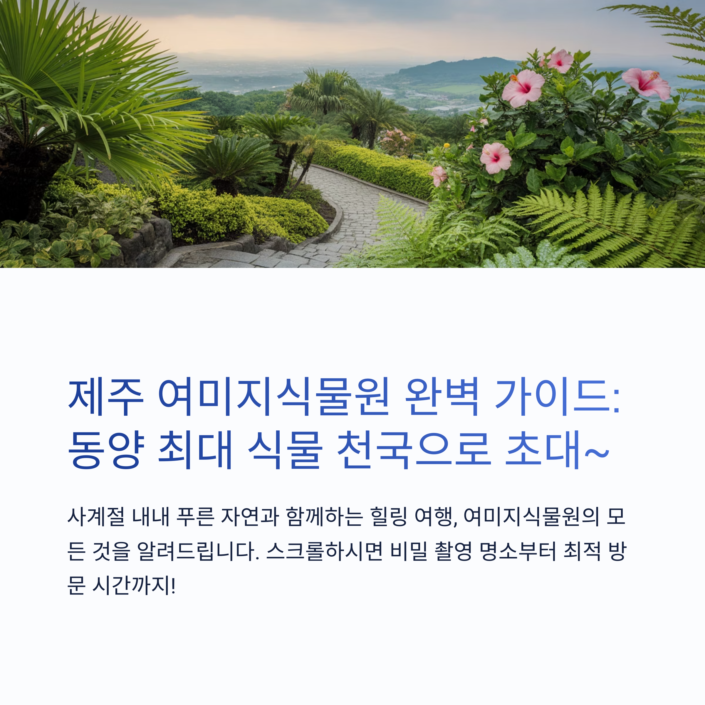 제주도 서귀포시에 위치한 여미지식물원은 동양 최대 규모의 온실을 자랑하며, 사계절 내내 푸른 자연을 만날 수 있는 대표 식물 테마 관광지입니다. 실내 온실과 넓은 야외 정원에는 세계 각국의 식물과 정원이 조화를 이루고 있어, 단순 관람을 넘어 힐링과 촬영을 동시에 즐길 수 있는 특별한 장소입니다. 여미지 방문을 계획 중이라면, 이 글을 통해 동선, 소요 시간, 촬영 시간대, 입장 요금까지 꼼꼼하게 확인해보세요.