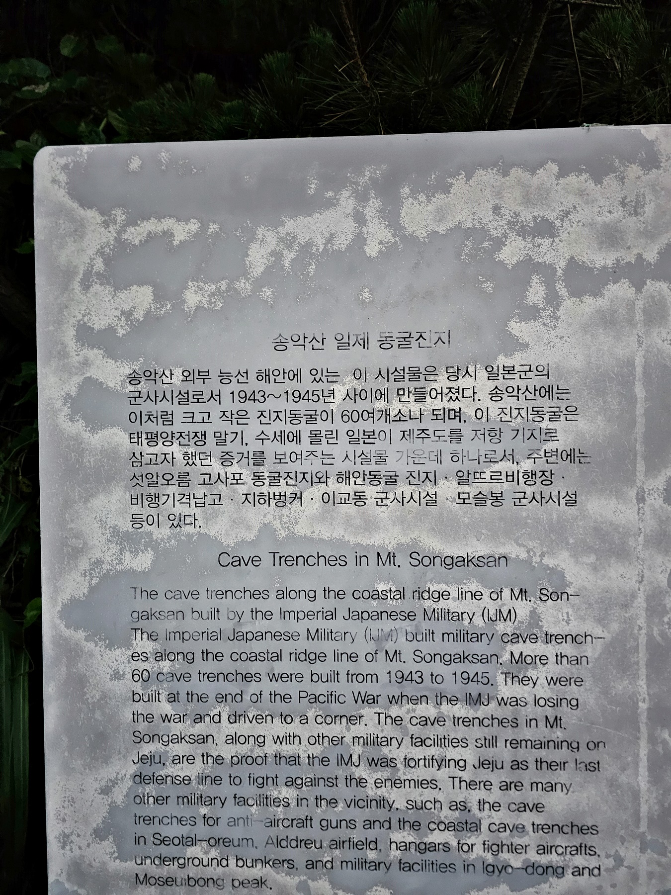 송악산 둘레길 코스와 겹쳐져있는 다크투어리즘 코스