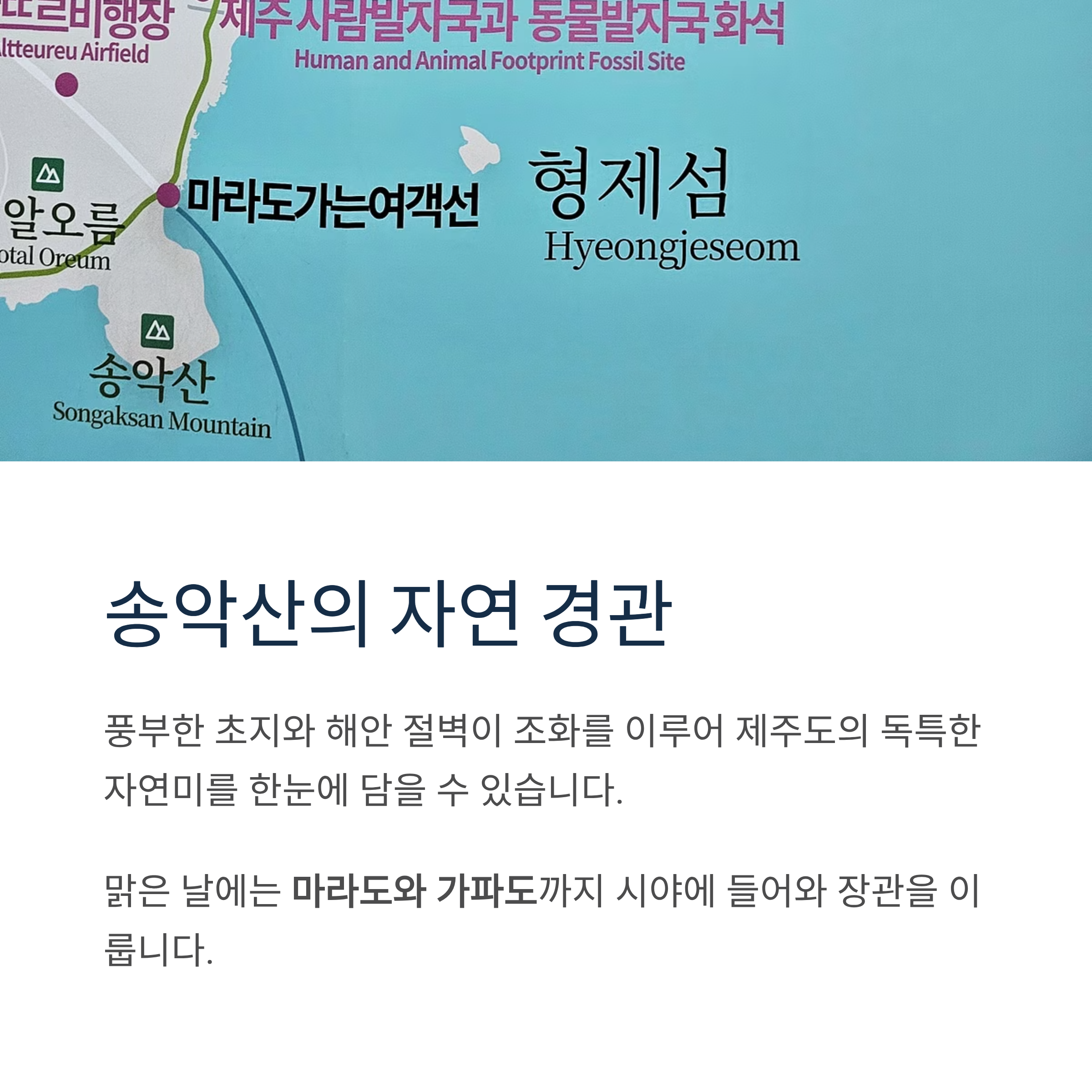 맑은 날에는 마라도와 가파도까지 시야에 들어와 장관을 이룹니다.