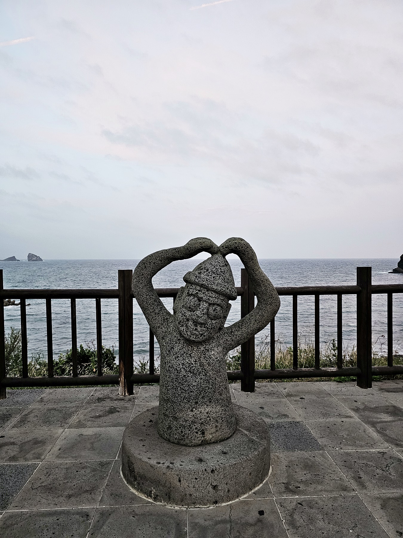 송악산 입구에 있는 비석과, 해녀조각상 사이에 하트를 하고 있는 귀여운 돌하르방도 보실수 있습니다.