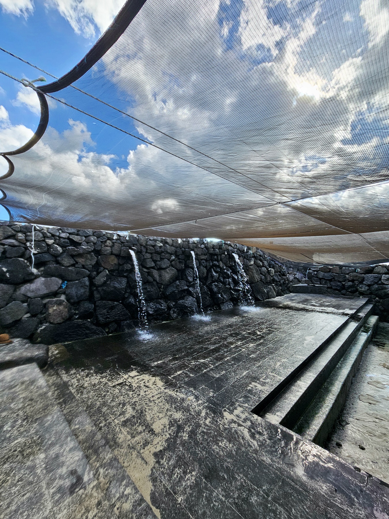 과물노천탕은 화산지형에서 솟아나는 천연 용천수로 운영됩니다.