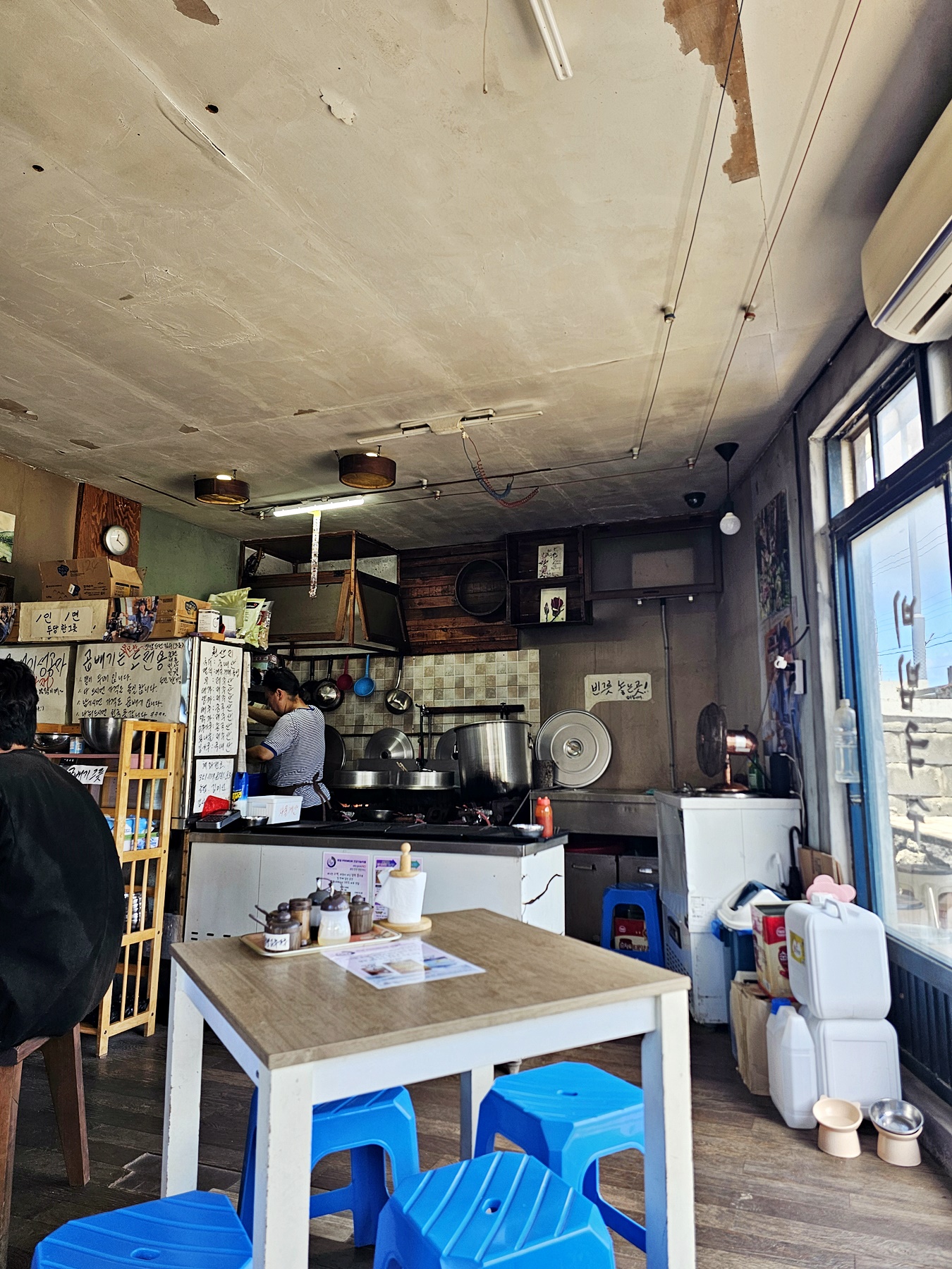 여름 휴가지로 방문했던 터라 날씨도 무척이나 더웠는데 식당의 문을 열고 장사를 하시더라고요, 아차!하고 살짝 고민이 되었습니다. 이미 몇 테이블에서 식사중이었고, 허기짐에 발길을 돌릴수 없어 자리를 잡았습니다. 사장님 혼자 음식과 테이블 서빙을 하시고 계시더라고요, 단골로 보이는 손님이 사장님과에 대화중에 알수 있었던 것은 함께 일하시던 남편분이 오늘은 병원에 가셔서 혼자 일을 하시고 계시다고 하는 말을 들었습니다.