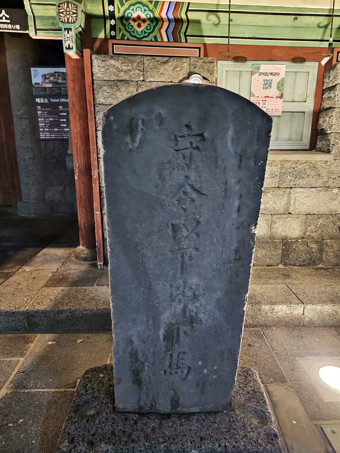 제주목 관아 입구에는 하마비(下馬碑)가 우뚝 서 있습니다. 하마비는 조선 시대에 고위 관직자라도 이곳을 지날 때는 말에서 내려 걸어가라는 뜻을 새긴 비석입니다. 이는 신분을 불문하고 모두가 예의를 갖추어야 하는 신성한 공간임을 상징하며, 당시의 엄격한 예법과 질서를 엿볼 수 있게 합니다. 또한, 정문에 걸린 '진해루' 현판은 이곳이 제주를 수호하고 바다를 통해 외부와 소통하던 중요한 관문이었음을 상기시켜 줍니다. 이처럼 제주목 관아 곳곳에는 제주의 역사와 문화가 고스란히 담겨 있어, 작은 비석 하나, 현판 하나에도 깊은 의미가 숨어 있습니다.